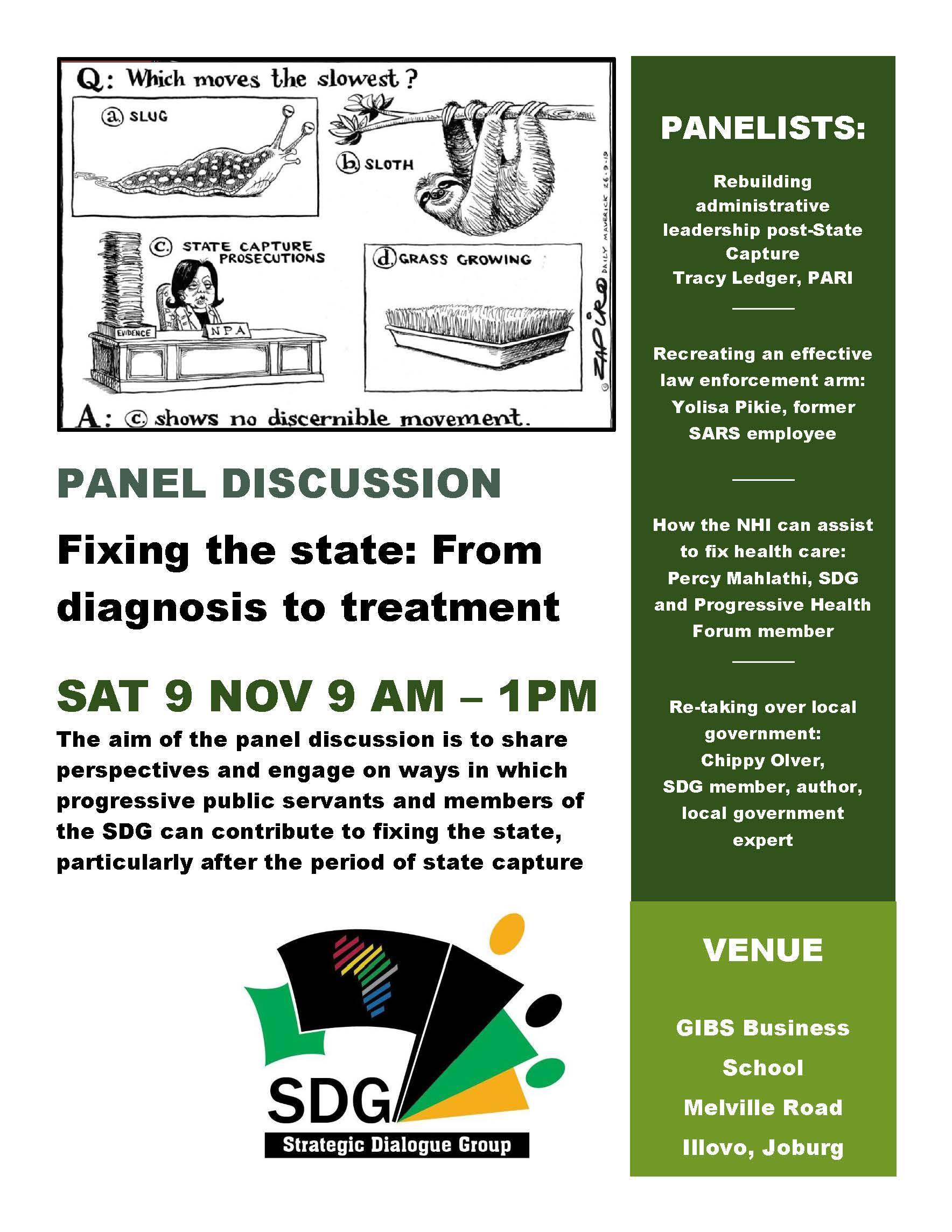 ‘The aim of the panel is to share perspectives and engage on ways in which progressive public servants and members of the SDG can contribute to fixing the state particularly after the period of state capture.’